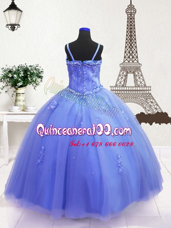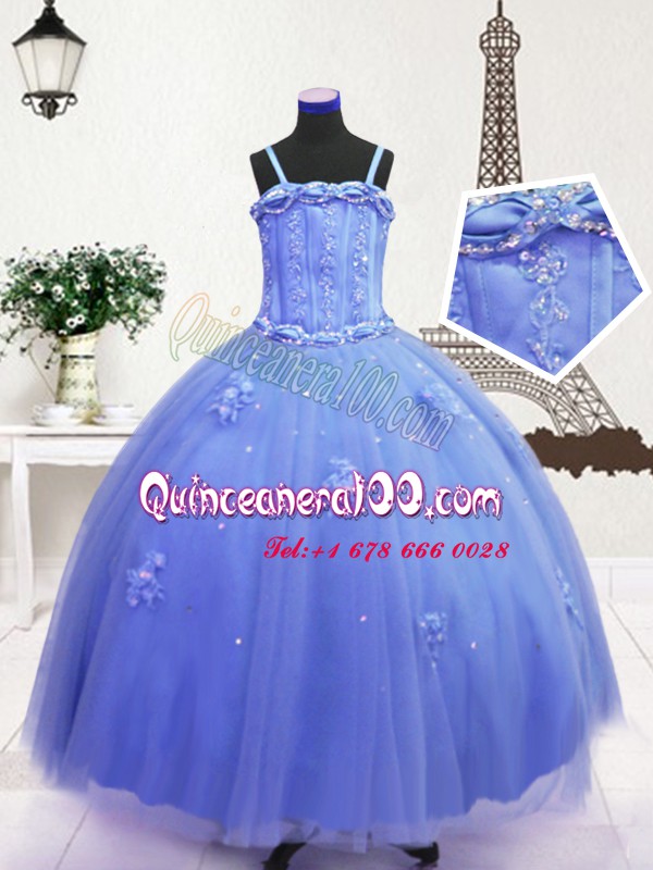 Fashionable Tulle Sleeveless Floor Length Pageant Gowns and Beading and Hand Made Flower