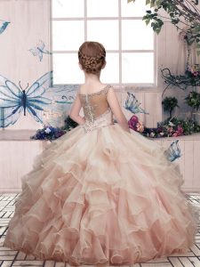 Floor Length Ball Gowns Sleeveless Olive Green Kids Pageant Dress Zipper