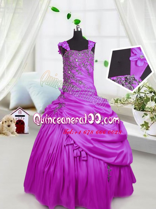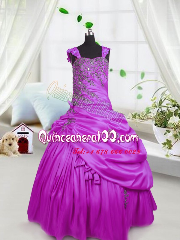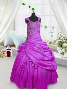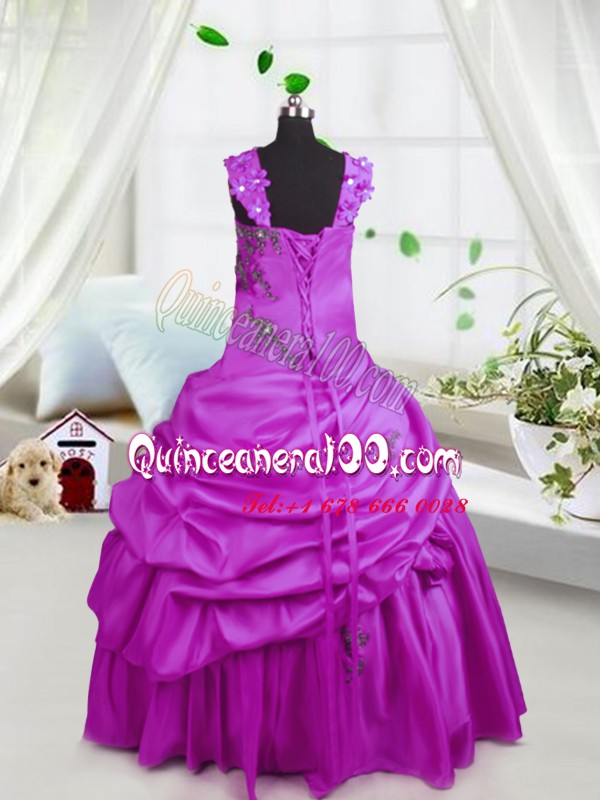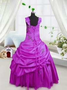 Floor Length Lace Up Glitz Pageant Dress Fuchsia for Party and Wedding Party with Beading and Pick Ups