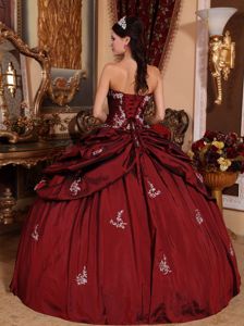 Floor-length Sweet Sixteenth Dresses with Appliques in Wine Red