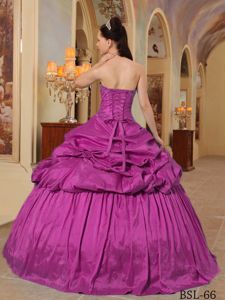 Fuchsia Ball Gown Dresses for Sweet15th with Beading in Taffeta