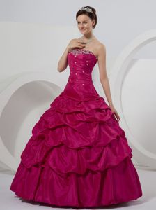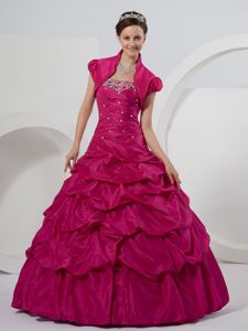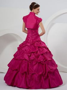 Fuchsia Taffeta Beaded Quinceanera Gown Dresses with Pick-ups
