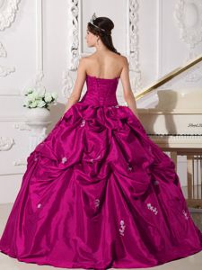 Fuchsia Taffeta Sweetheart Sweet 15 Dress with Appliques Pick ups