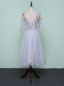Glamorous Tulle Half Sleeves Knee Length Dama Dress and Embroidery