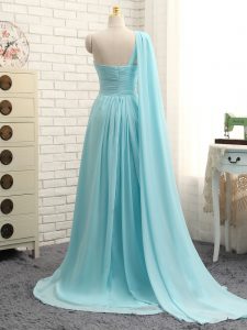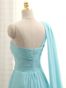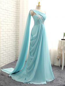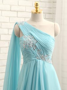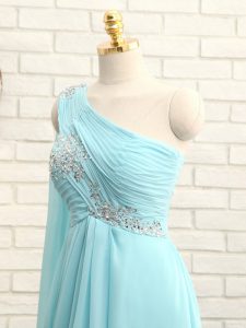 Glittering Aqua Blue Empire Beading and Ruching Court Dresses for Sweet 16 Zipper Chiffon Sleeveless