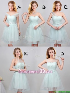 Glorious Sleeveless Mini Length Lace and Appliques Lace Up Quinceanera Court Dresses with Apple Green