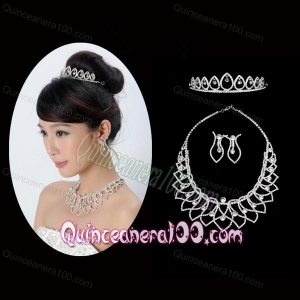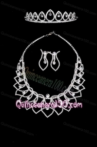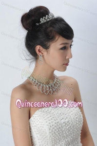 Shining Rhinestone Wedding Jewelry Set Including Crown Necklace And Earrings