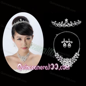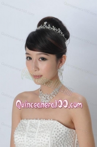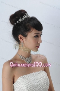 Alloy With Luxurious Rhinestone Jewelry Set Including Crown Necklace And Earrings