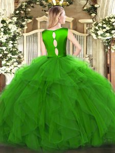 Graceful Fuchsia Scoop Clasp Handle Ruffles Quince Ball Gowns Sleeveless
