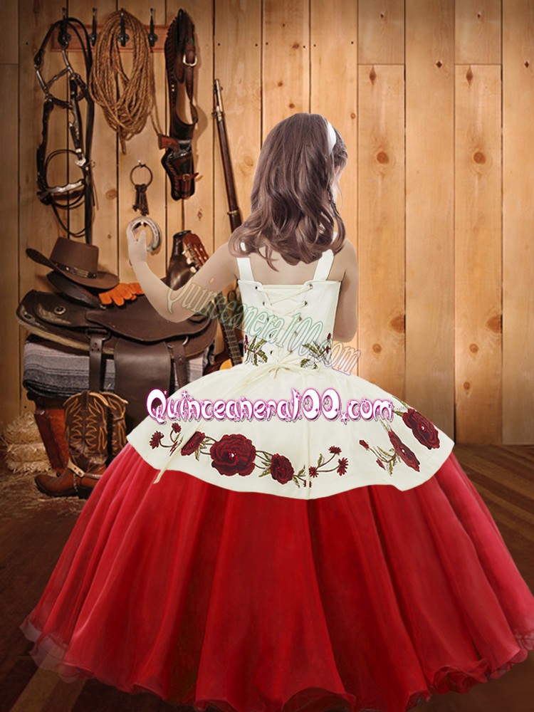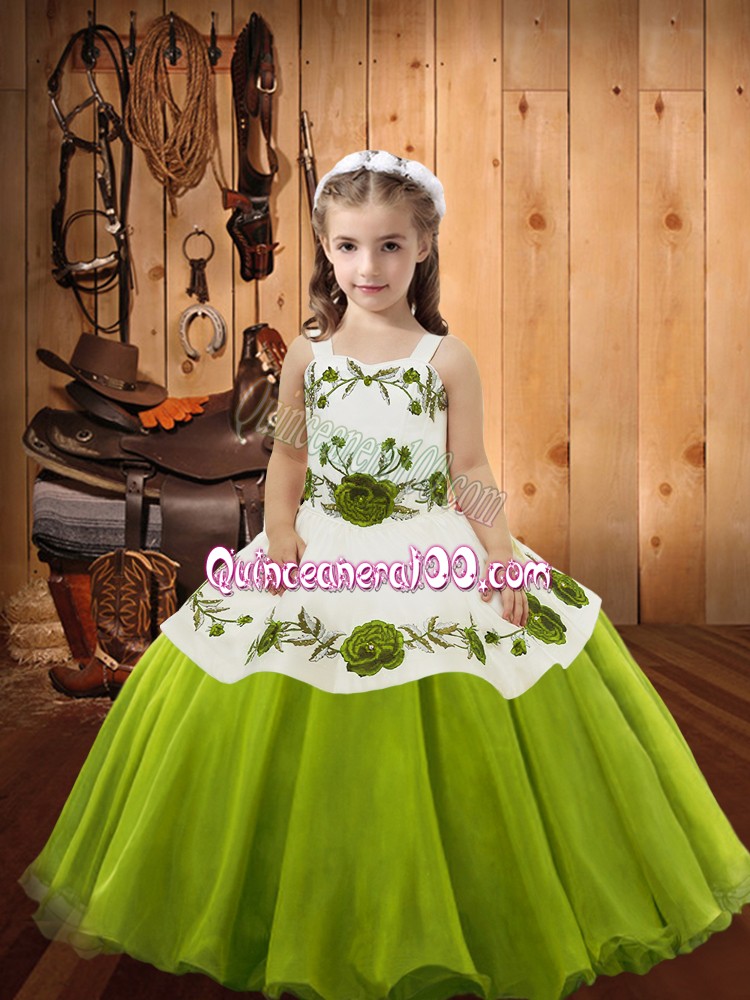 Graceful Olive Green Straps Neckline Embroidery Pageant Dress for Womens Sleeveless Lace Up