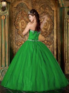 Grass Green Princess Sweetheart Beading Pleated Quinceanera GownsGrass Green Princess Sweetheart Beading Pleated Quinceanera Gowns