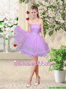 Great Popular A Line One Shoulder Laced Dama Dresses in Lavender