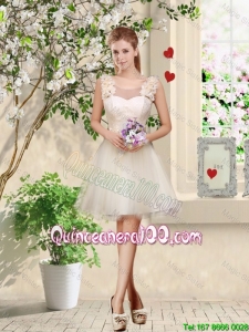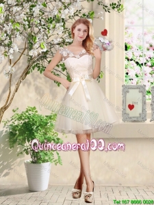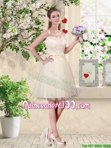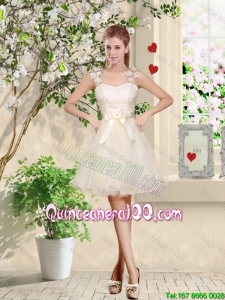 Great Pretty One Shoulder Champagne Dama Dresses with Appliques