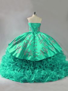 Green Sleeveless Court Train Embroidery and Ruffles Vestidos de Quinceanera