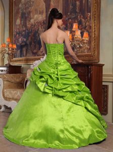 Green Taffeta Pick-ups Quinceanera Dresses with Appliques