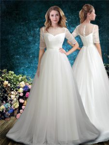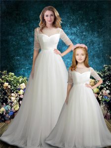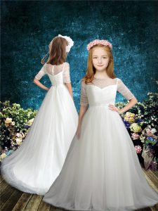 Half Sleeves Beading Zipper 15 Quinceanera Dress with White Brush Train