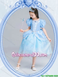 Halloween Infant Square Zipper Up Light Blue Little Girl Pageant Dress in Tea Length