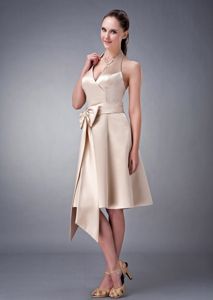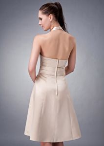 Halter A-line Tea-length Satin Sash 2013 Dama Dress in Champagne