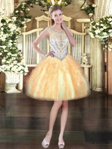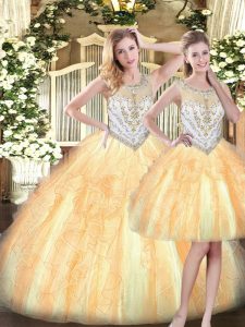 High Class Floor Length Gold Quince Ball Gowns Scoop Sleeveless Zipper