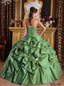 High-class Floor-length Strapless Beaded Green Sweet 15 DressesHigh-class Floor-length Strapless Beaded Green Sweet 15 Dresses
