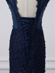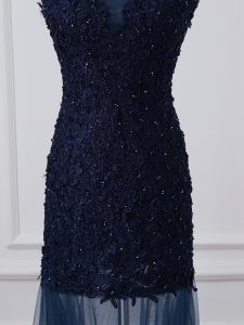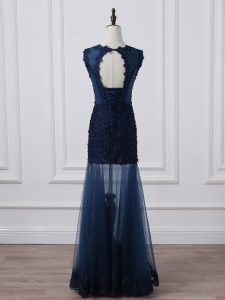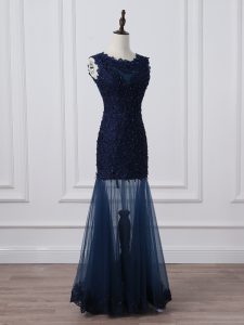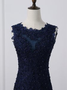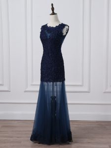 High Class Scoop Sleeveless Tulle Mother of Bride Dresses Lace and Appliques Lace Up
