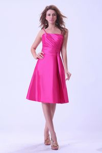 Hot Pink Knee-length Quinceanera Dama Dress With a Sash and Straps