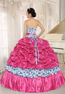 Hot Pink Muti-Layered Sweet 15 Dresses with Pick-ups and Patterns