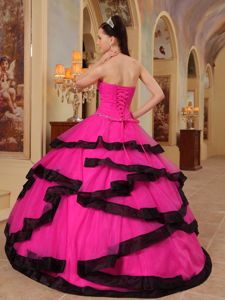 Hot Pink Strapless Organza Quinceanera Party Dress with Beading