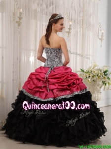 Hot Sale Red and Black Sweetheart Quinceanera Dresses in Zebra
