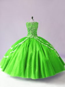 Ideal Floor Length Green 15 Quinceanera Dress Tulle Sleeveless Beading and Appliques