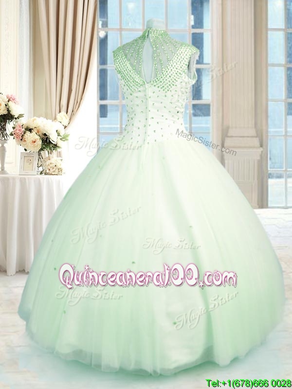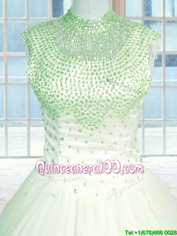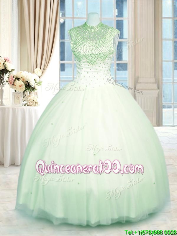 Ideal Yellow Green Zipper Sweet 16 Dresses Beading Sleeveless Floor Length