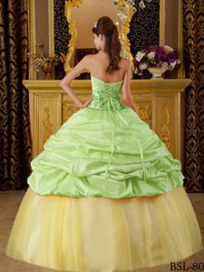 Impressive 2014 Green and Yellow Flower Beaded Quince Gown