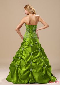 Latest Green Strapless Embroidery Sweet 15 Dresses with Pick-upsLatest Green Strapless Embroidery Sweet 15 Dresses with Pick-ups