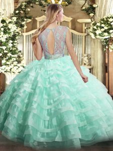 Lavender Backless Scoop Lace and Ruffled Layers 15 Quinceanera Dress Organza Sleeveless