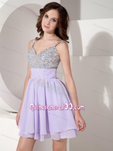 Lavender Beaded Empire Sweetheart 16 Birthday Party Dress with StrapsLavender Beaded Empire Sweetheart 16 Birthday Party Dress with Straps