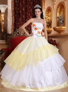 Light Yellow and White Layered Quince Dress with Embroidery on Bodice