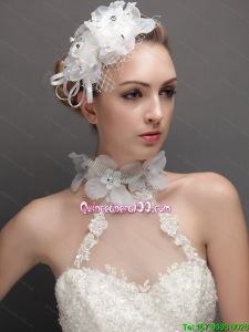 Lovely Net With Rhinestones Adorned Flowers Women s Fascinators Floral Choker Set