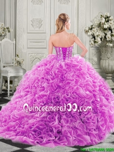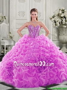 Lovely Puffy Skirt Beaded Bodice and Ruffled Vintage Quinceanera Dress in Fuchsia