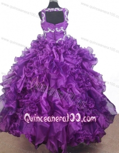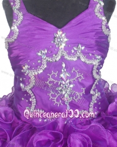 Luxurious Beading and Ruffles Ball Gown V-neck Little Gril Pageant Dress