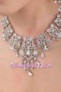 Elegant Alloy With Rhinestone Ladies Necklace and Headpiece