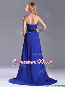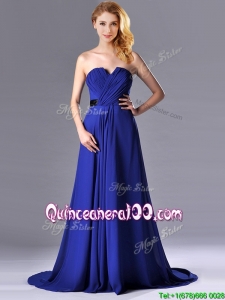 Luxurious Empire Chiffon Royal Blue Dama Dress with Brush Train