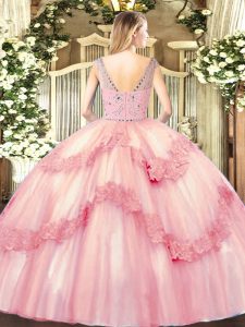 Luxurious Lavender Ball Gowns Tulle Bateau Sleeveless Beading and Appliques Floor Length Zipper Sweet 16 Dresses