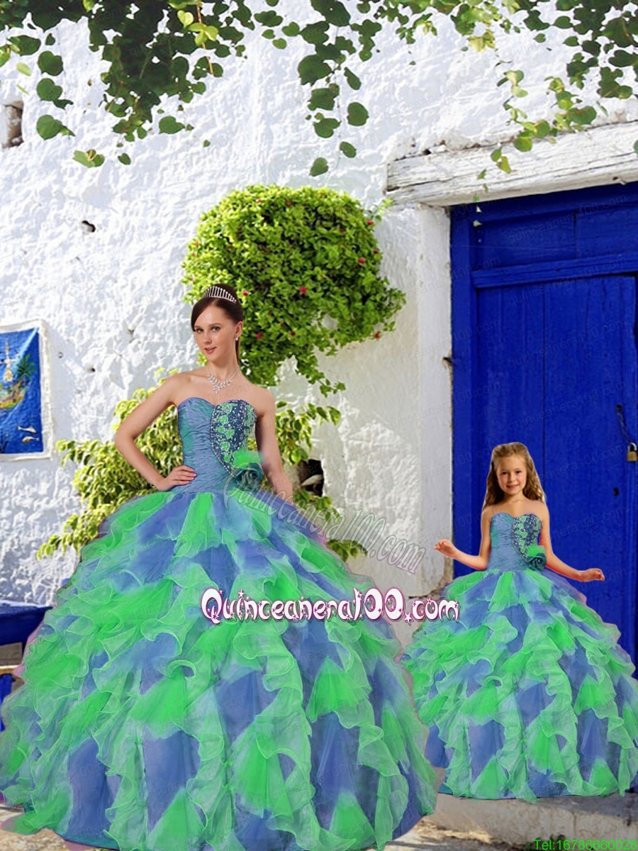 Luxurious Multi-color Princesita Dress with Beading and Ruffles