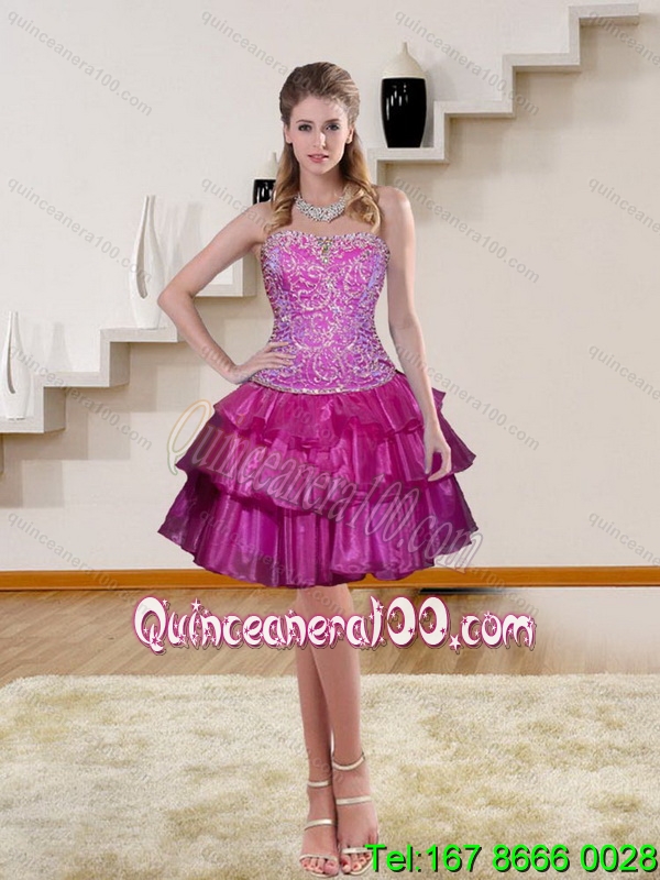 Luxurious Multi Color Ruffled Embroidery Prom Dresses in Fuchsia