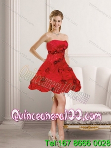 Luxurious Red Strapless Quinceanera Dresses with Beading and Hand Made Flower for 2015