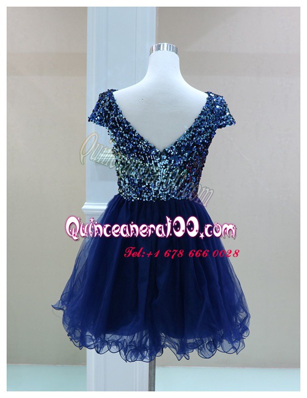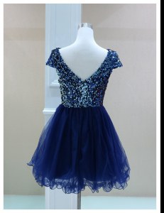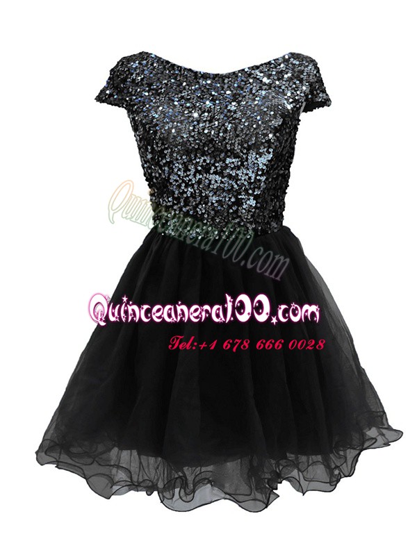 Luxurious Sequins Mother Dresses Black Zipper Cap Sleeves Mini Length