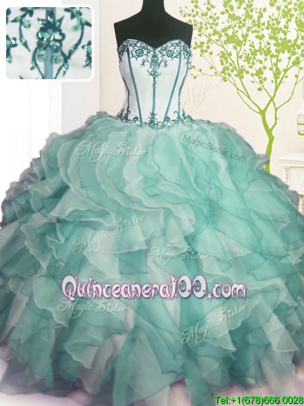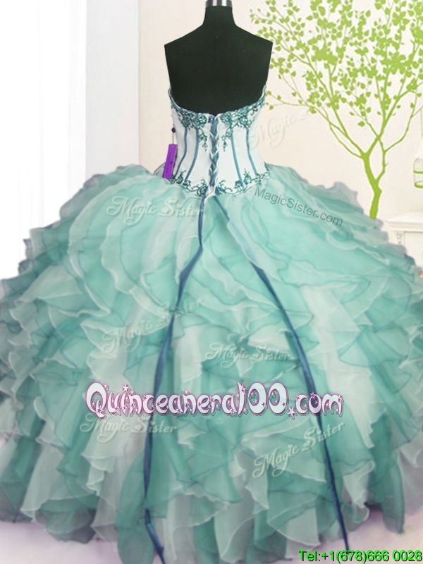Luxurious Sleeveless Organza Floor Length Lace Up 15 Quinceanera Dress inGreen forSpring and Summer and Fall and Winter withBeading and Ruffles