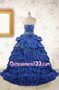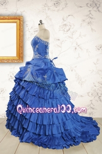 Modern Brush Train Appliques Sweet 15 Dresses in Royal Blue