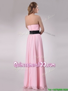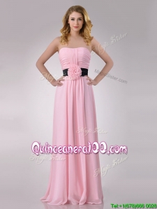Modern Empire Chiffon Pink Long Dama Dress with Hand Crafted Flower
