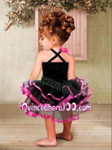 Modest Ball Gown Straps Tea-length Beading Black Little Girl Dress
